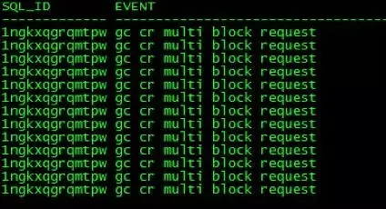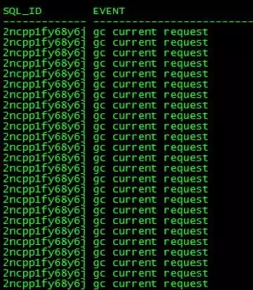 进一步从日志分析发现,索引IDX_HQMHLCD_RZ_1相关的业务SQL在数据库故障发生前存在gc cr multiblock request等待事件和gc current request等待事件:
