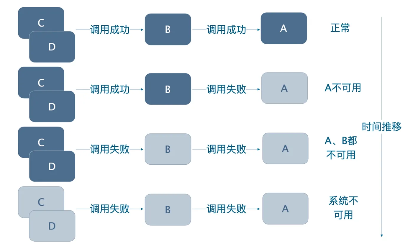 系统依赖的某个服务发生延迟或故障,数秒内导致所有应用资源(线程,队列等)被耗尽,造成雪崩效应。