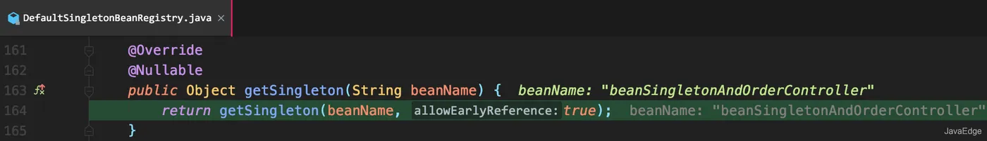 此查找方法不知道FactoryBean前缀或别名。获取单例实例前,需首先解析规范化的bean名称:
