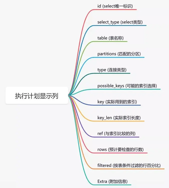 通过这几列可以判断索引使用情况,执行计划包含列的含义如下图所示: