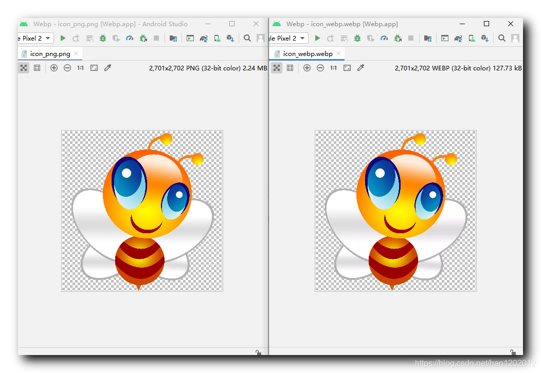 查看生成的两张图片大小 : icon_png.png 图片 2350413 23504132350413 字节 , icon_webp.webp 图片 177410 177410177410 字节 ;