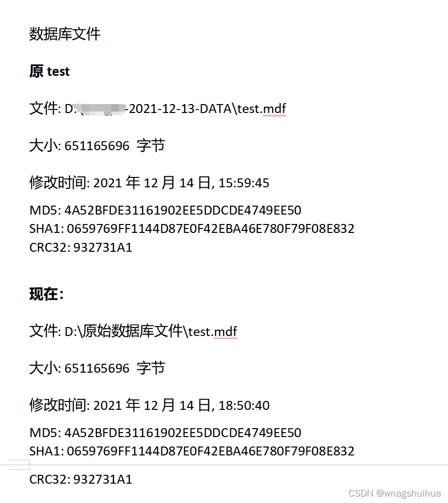 数据库sql mdf文件,拷贝前后md5值对比,确保数据库文件大小一致。