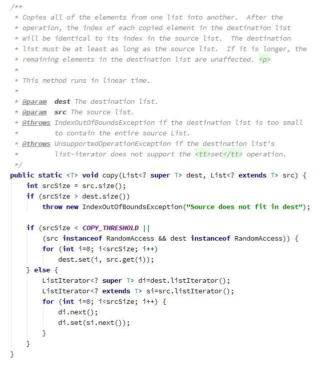 我们可以从Java开发团队的代码中获得到一些启发,copy方法中使用到了PECS原则,实现了对参数的保护。