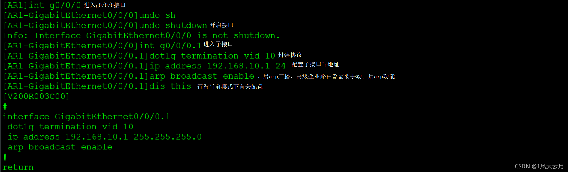单臂路由是指在路由器的一个接口上通过配置子接口(逻辑接口)的方式,实现原来互相隔离的不同VLAN(虚拟局域网)之间的通信