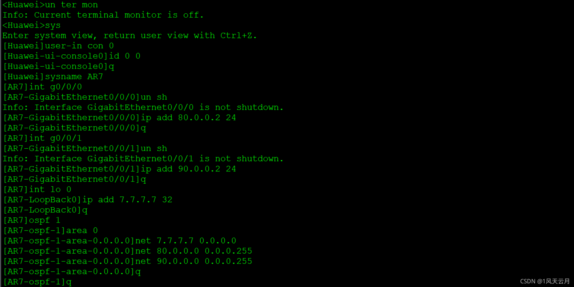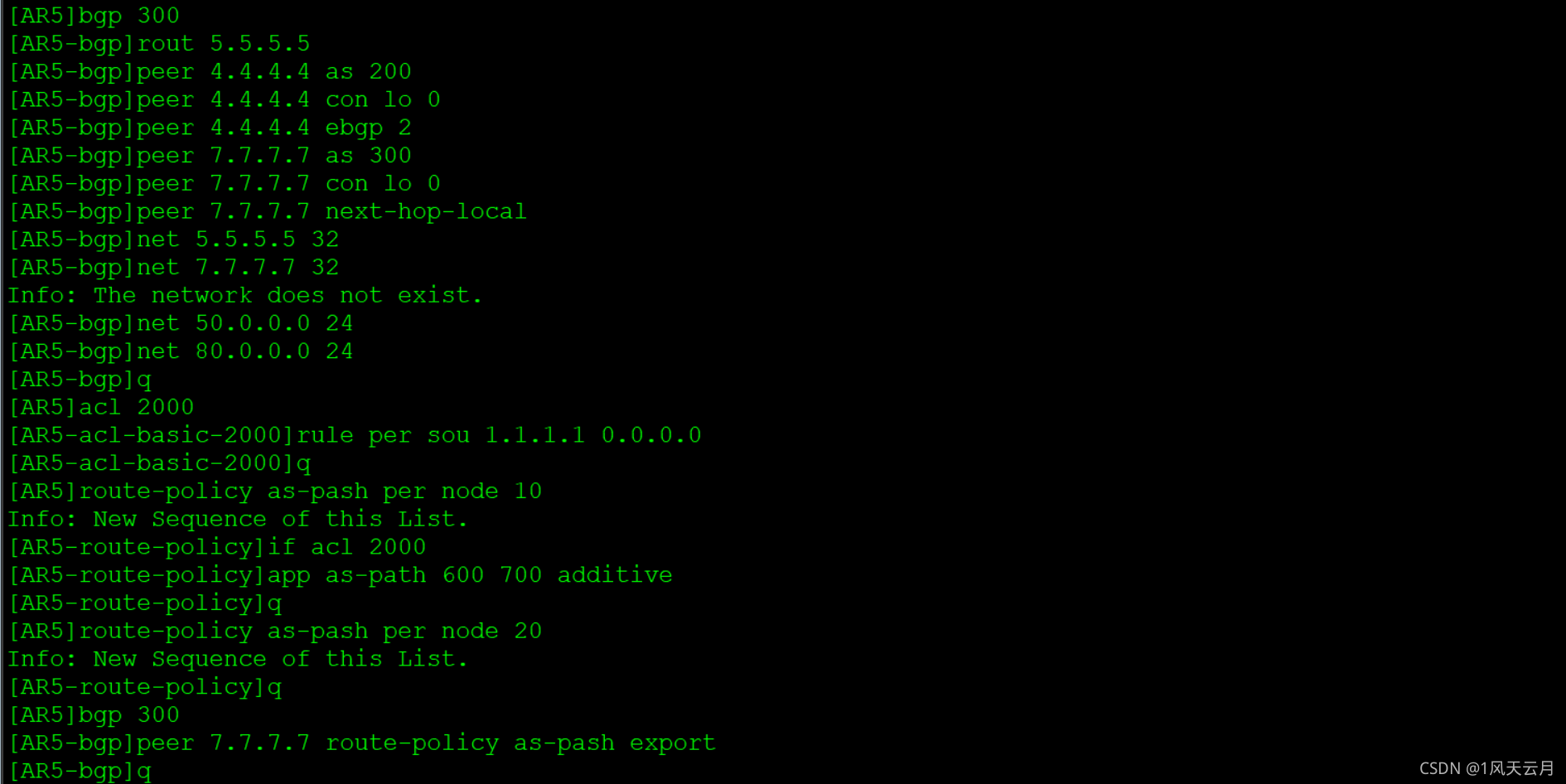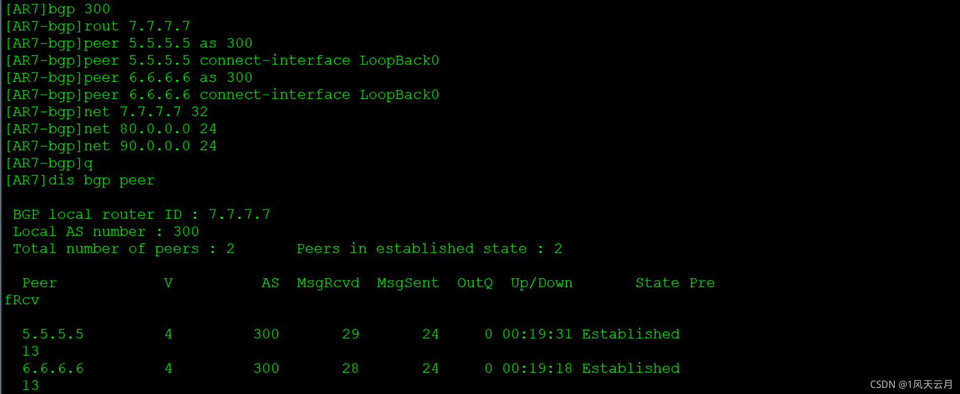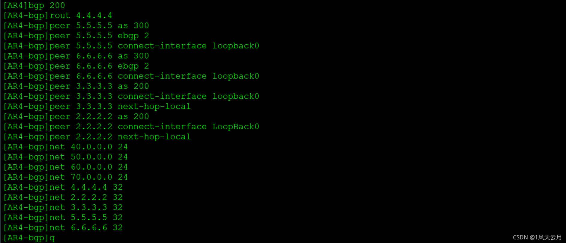 通过配置BGP和修改BGP属性,实现R1到R7的路径为R1->R2->R4->R5->R7,R7到R1的路径为R7->R6->R4->R3->R1