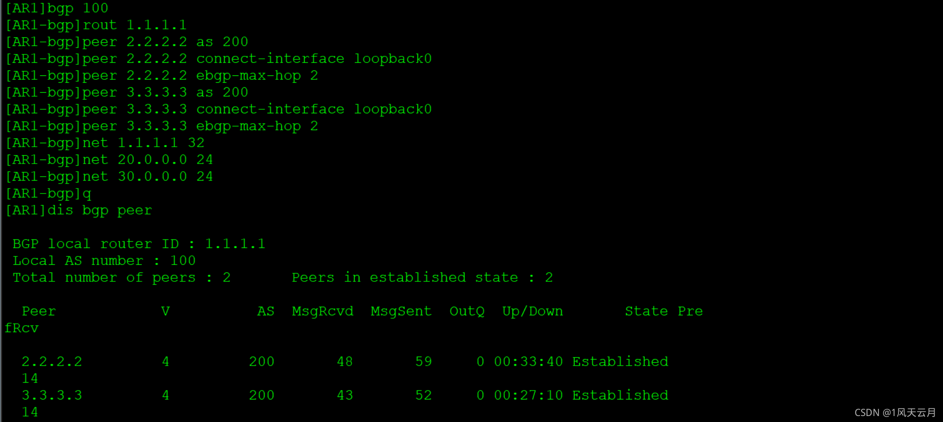 - EBGP:运行于不同AS之间的BGP称为EBGP,为了防止AS间产生环路,当BGP设备接收EBGP对等体发送的路由时,会将带有本地AS号的路由丢弃
