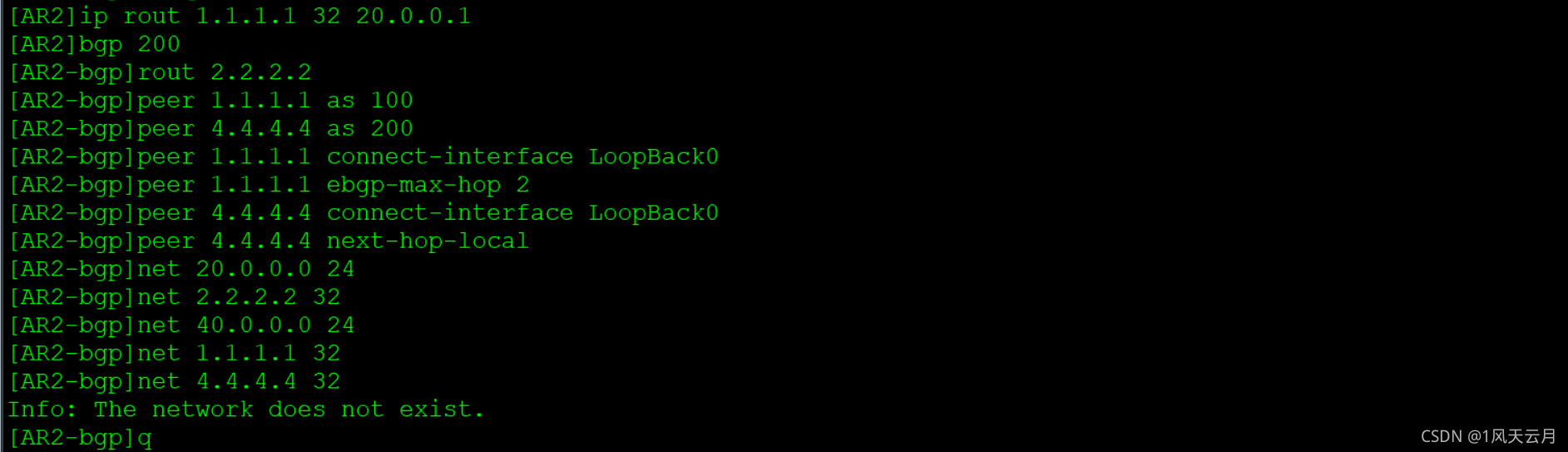 - BGP Speaker在向EBGP对等体发布某条路由时,会把该路由信息的下一跳属性设置为本地与对端建立BGP邻居关系的接口地址