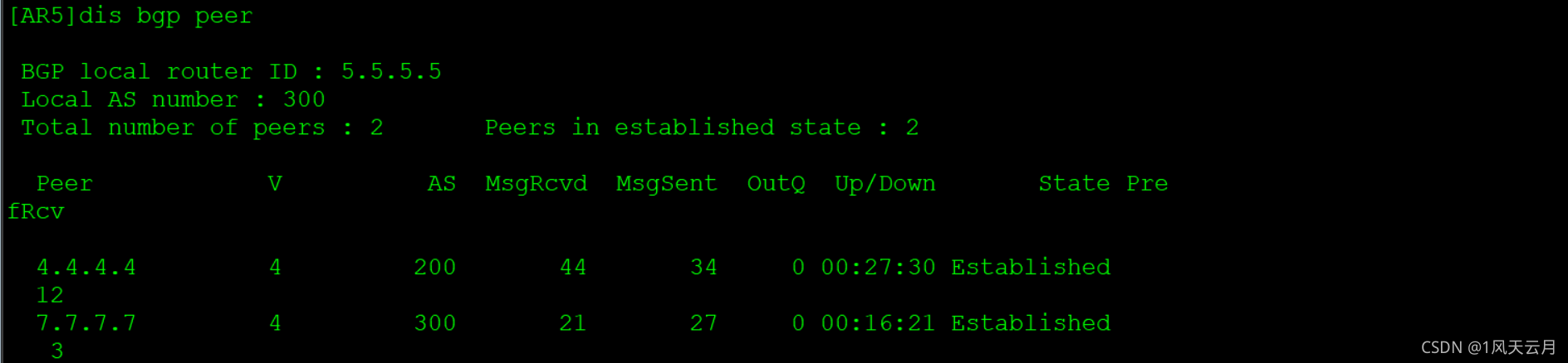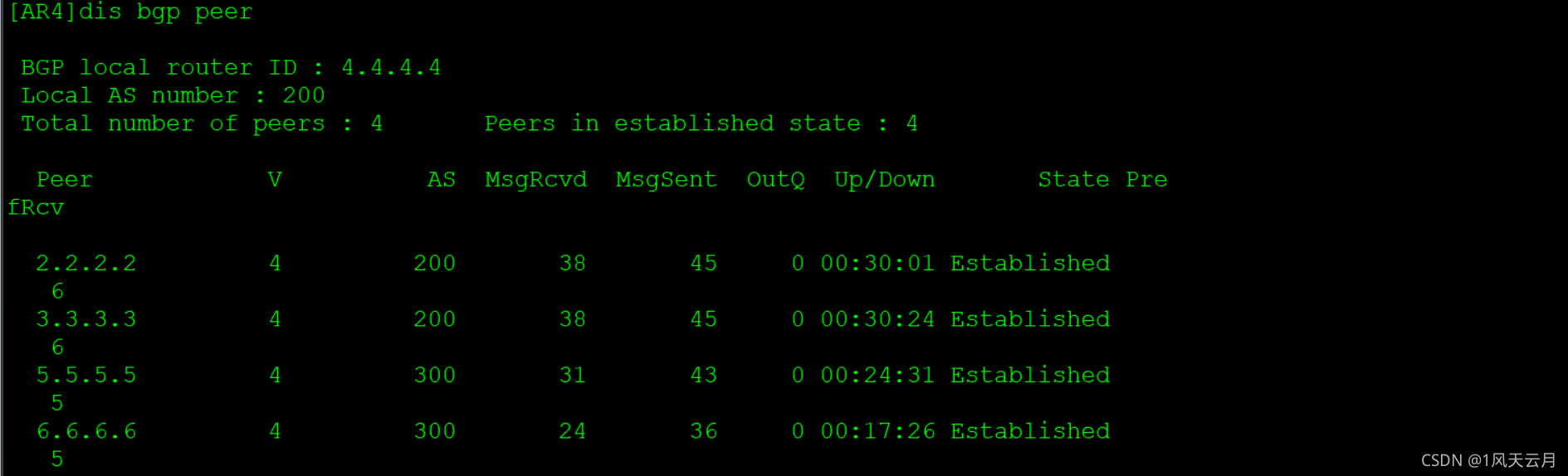 在Established状态下,BGP可以和对等体交换Update、Keepalive、Route-refresh报文和Notification报文