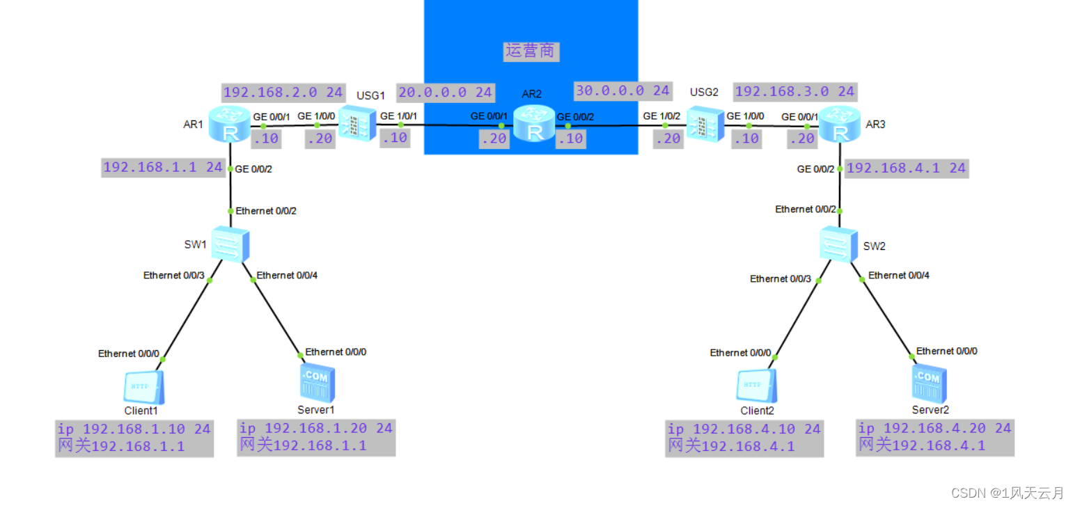 当华为防火墙的公网接口通过拨号方式动态获取公网地址时,如果只想使用这一个公网IP地址进行地址转换,此时不能在NAT地址池中配置固定的地址,因为公网IP地址是动态变化的,此时,可以使用Easy IP方式,即使出接口上获取的公网IP地址发生变化,华为防火墙也会按照新的公网IP地址来进行地址转换