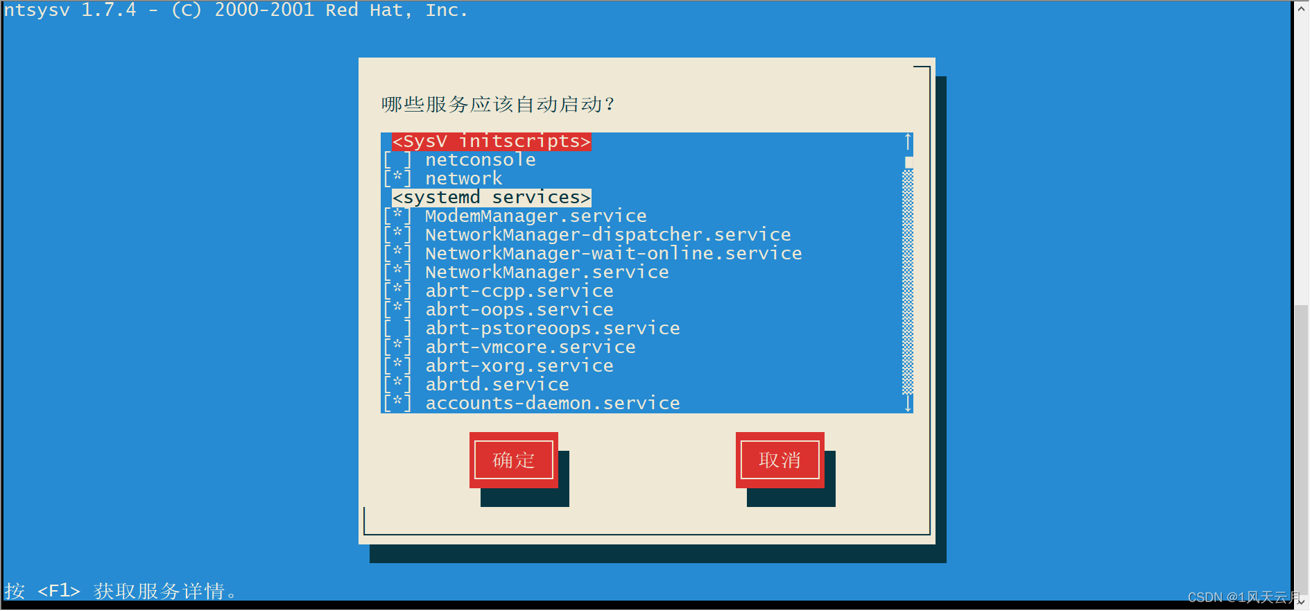 Linux操作系统在每次开机后会进入默认的systemd运行目标(如字符模式或图形模式),并运行该目标中默认设为启动的各种系统服务,若要禁止某些系统服务自动运行,可以使用ntsysv或者systemctl工具进行优化
