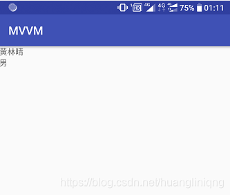 ActivityMainBinding activityMainBinding = DataBindingUtil.setContentView(this, R.layout.activity_main); User user = new User("黄林晴", "男"); activityMainBinding.setUser(user);