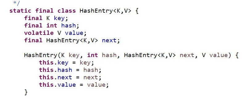 PS:这里ConcurrentHashMap也有加锁读的情况。利用方法 V readValueUnderLock(HashEntry<K,V> e)。只有value为空的时候,才会加锁读,这种情况就是编译器对value的赋值操作进行重排序了。