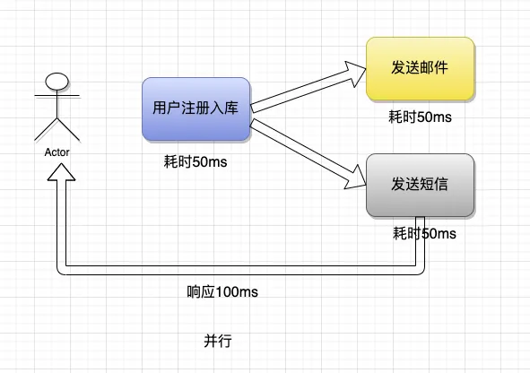 拿我们的用户注册来举例,用户注册之后需要发注册邮件和注册短信。如下: