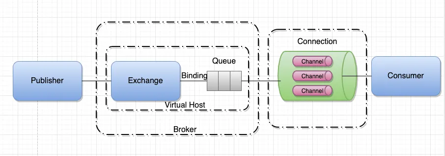 信道,多路复用连接中的一条独立的双向数据流通道。信道是建立在真实的 TCP 连接内地虚拟连接,AMQP 命令都是通过信道发出去的,不管是发布消息、订阅队列还是接收消息,这些动作都是通过信道完成。因为对于操作系统来说建立和销毁 TCP 都是非常昂贵的开销,所以引入了信道的概念,以复用一条 TCP 连接。