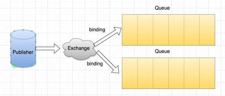 生产者 Publisher 发送到 Exchange 的所有消息都会路由到图中的两个 Queue ,并最终被两个消费者(Consumer1与Comsumer2)消费。