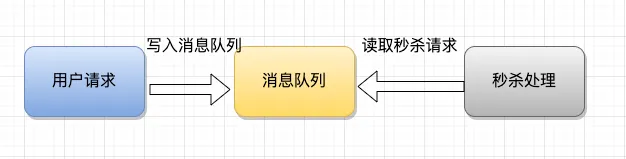 当我们使用了消息队列之后,在这个高峰期的时候,很多用户进来,比如每秒有 5 千个请求,我们只需要将这 5 千个请求放在消息队列里,系统每秒处理 2 千个请求,会从消息队列里拉取出对应的数量,每秒只会处理这 2 千个请求。这样在秒杀持续的这个时间段内,会有几十万或者更多的请求都放在消息队列里。因为毕竟秒杀只是会在短暂的那一段时间,等它过去之后,每秒可能就只有几十,几百个请求进入消息队列。但是系统还会按照每秒 2 千个请求的速度去处理。所以,秒杀结束,系统会把那些剩下的消息都消费掉。