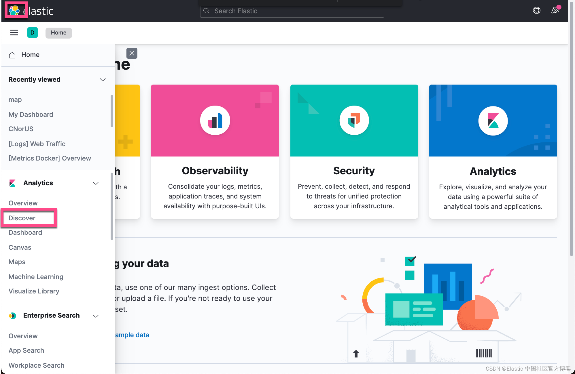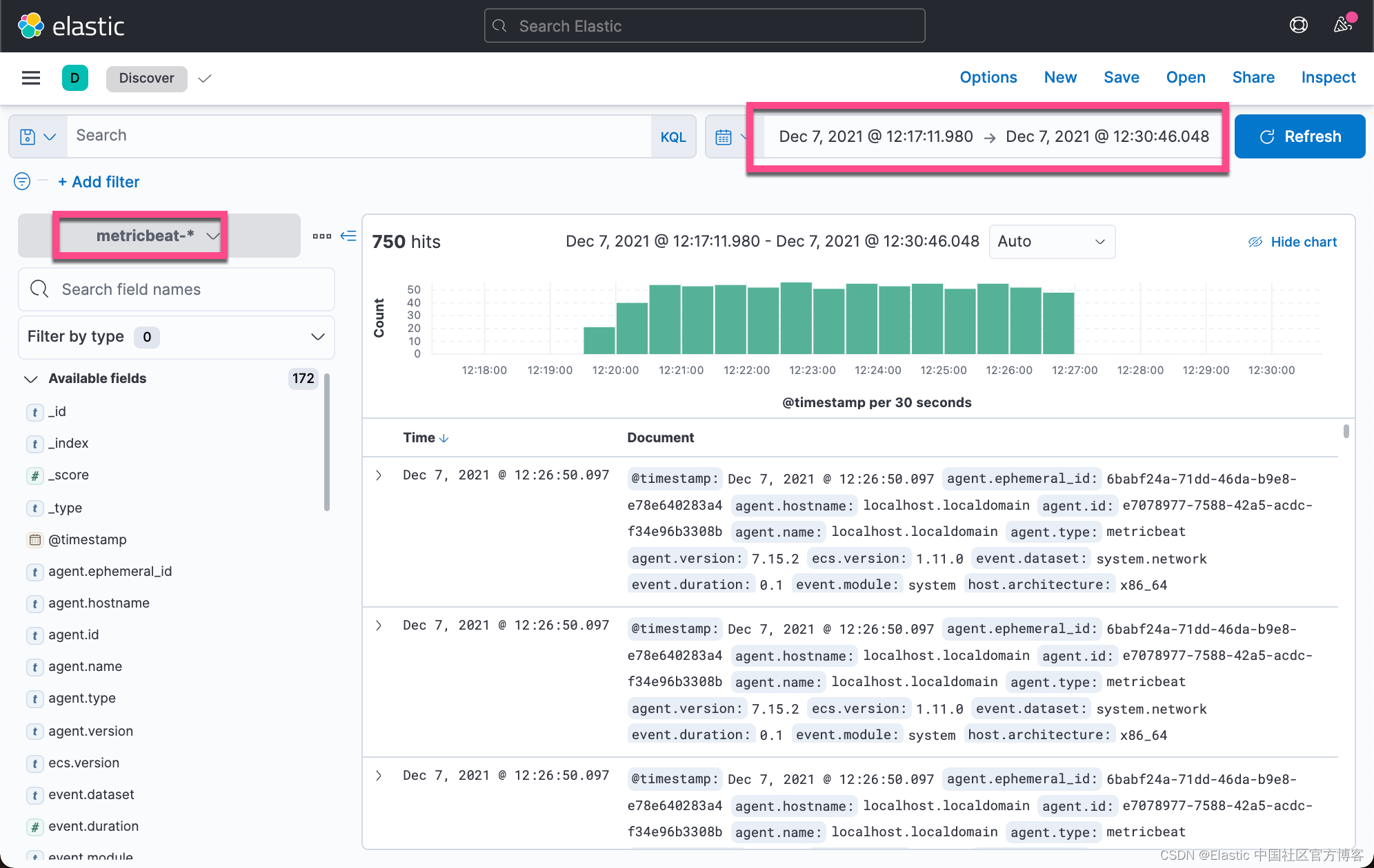 我们打开 Kibana 中的 Discover:
