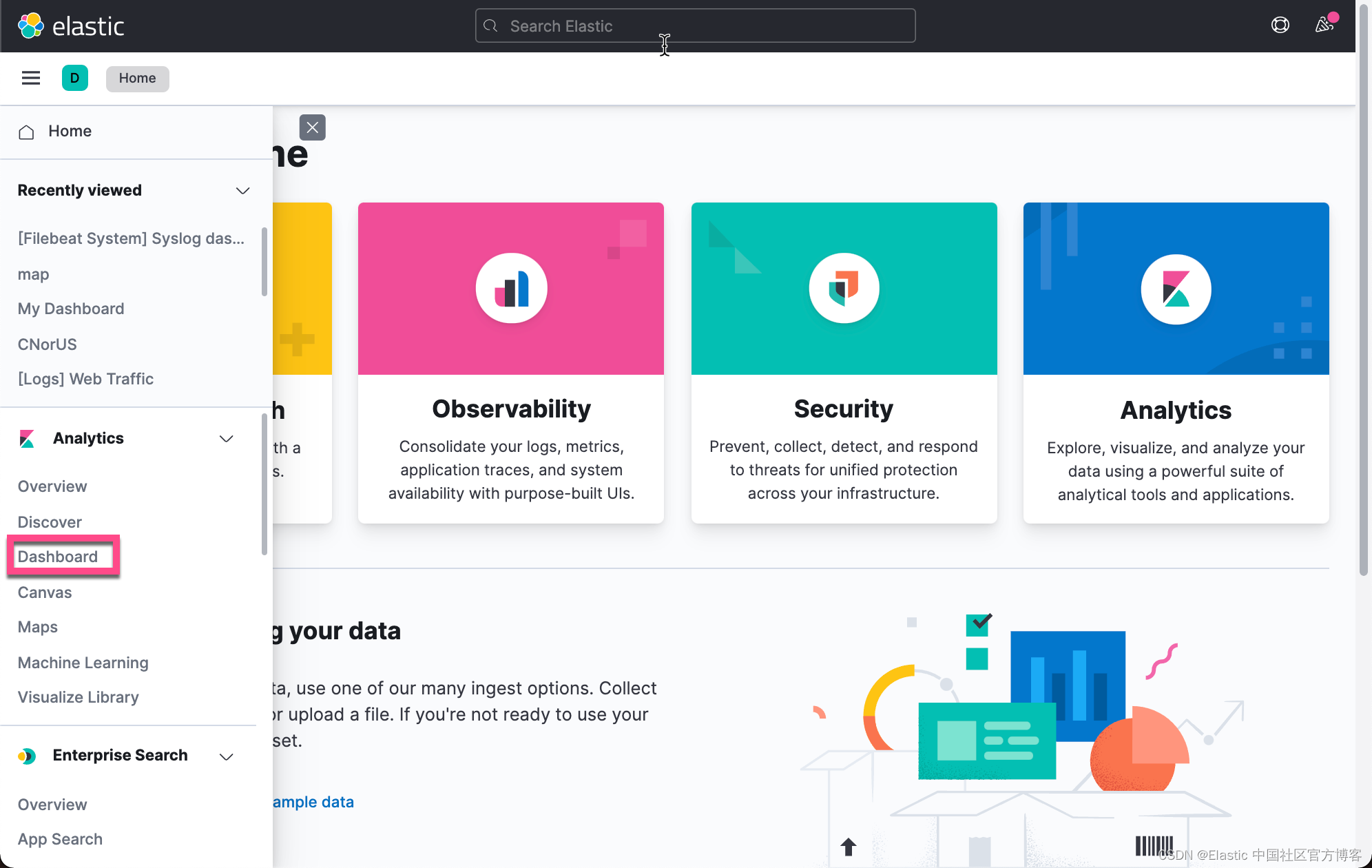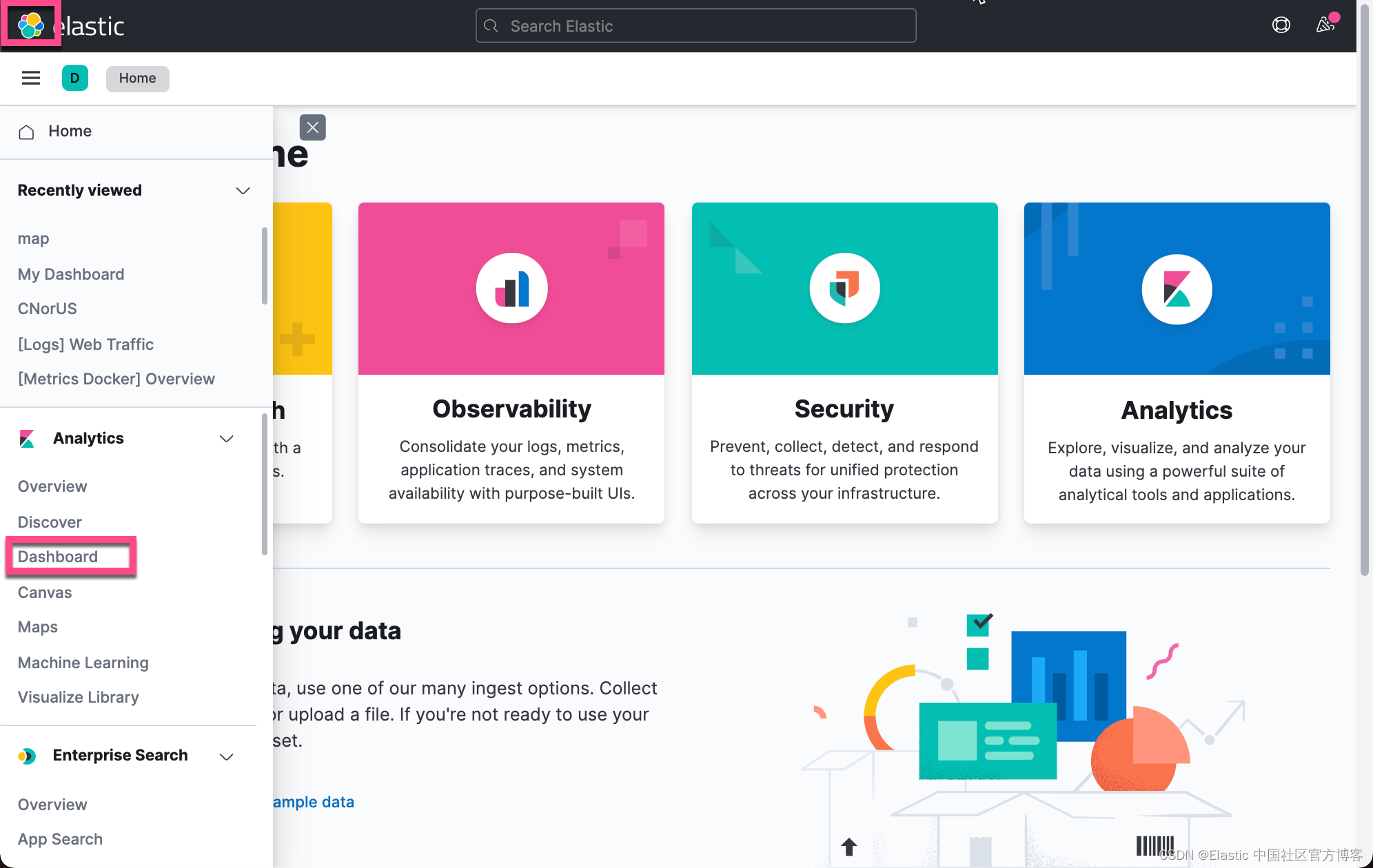 我们首先打开 Kibana: