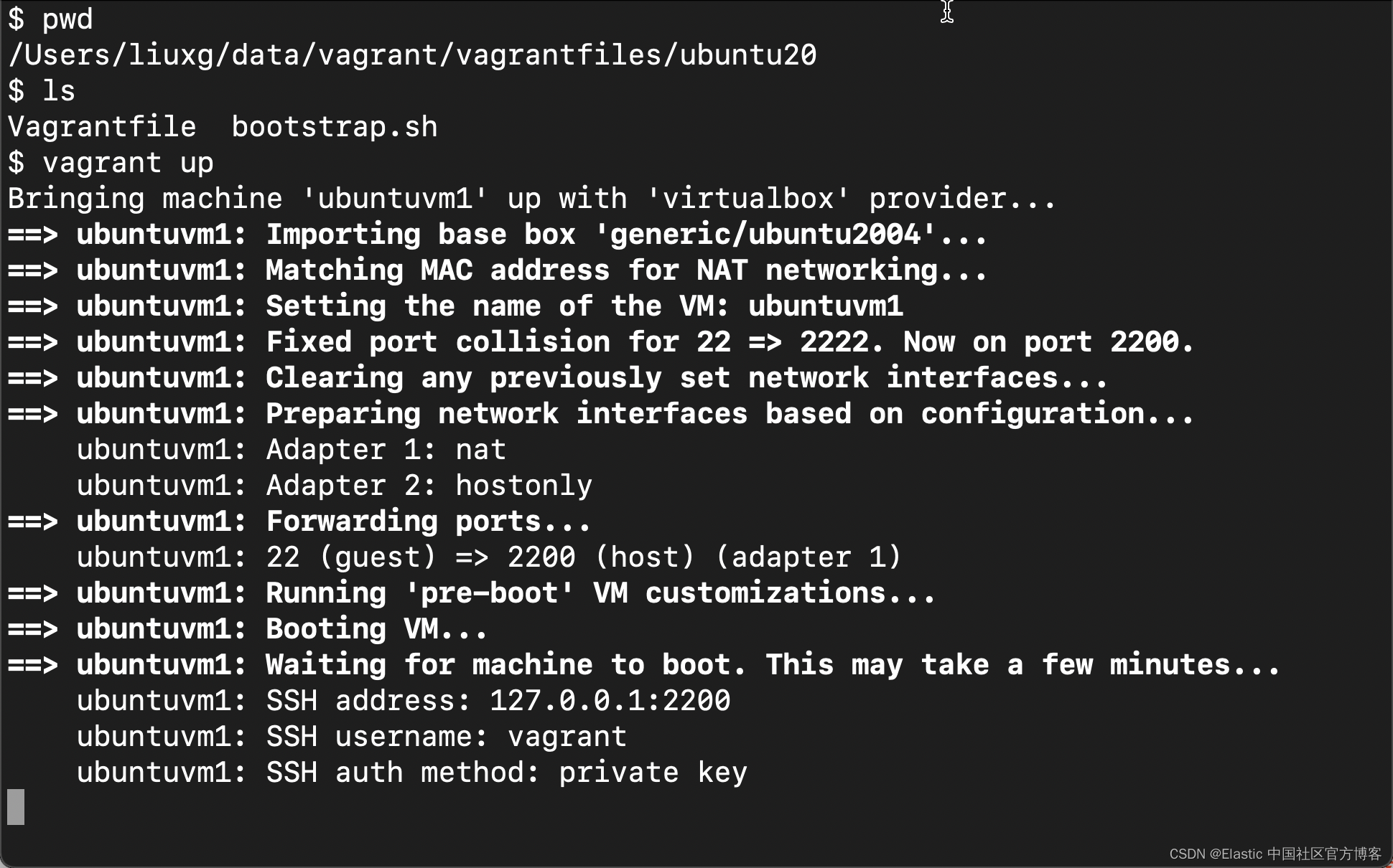 我们在 Vagrantfile 所在的目录里打入如下的命令: