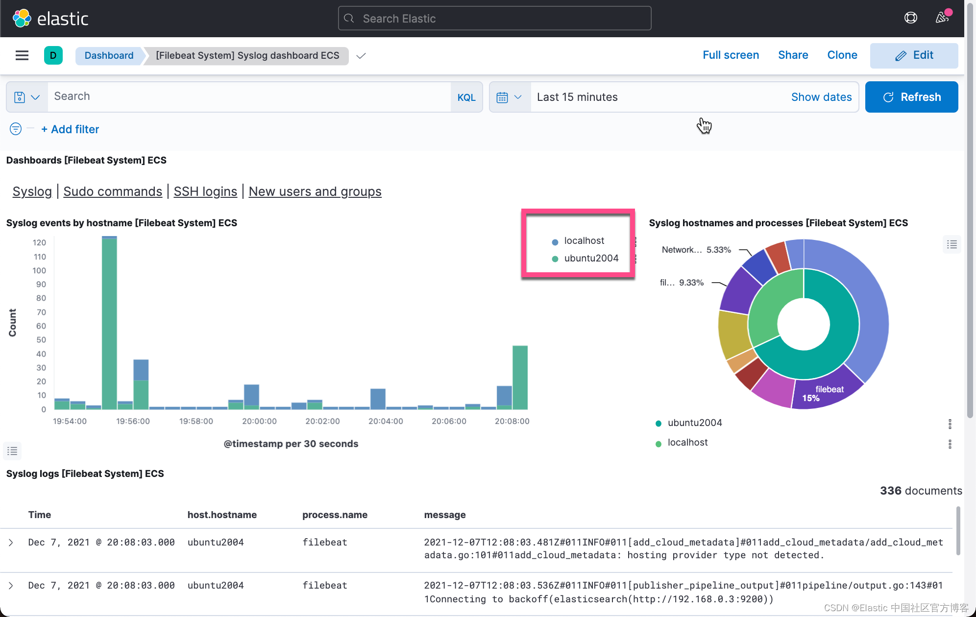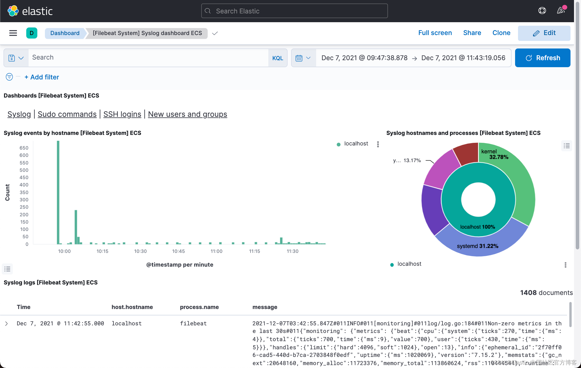 我们选择上面的 [Filebeat System] Syslog dashboard ECS: