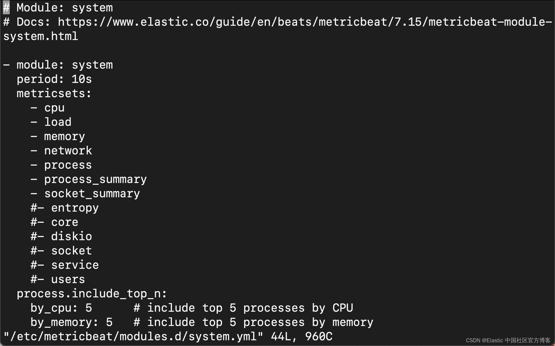 我们接下来查看文件 /etc/metricbeat/modules.d/system.yml 来了解该模块所收集的信息: