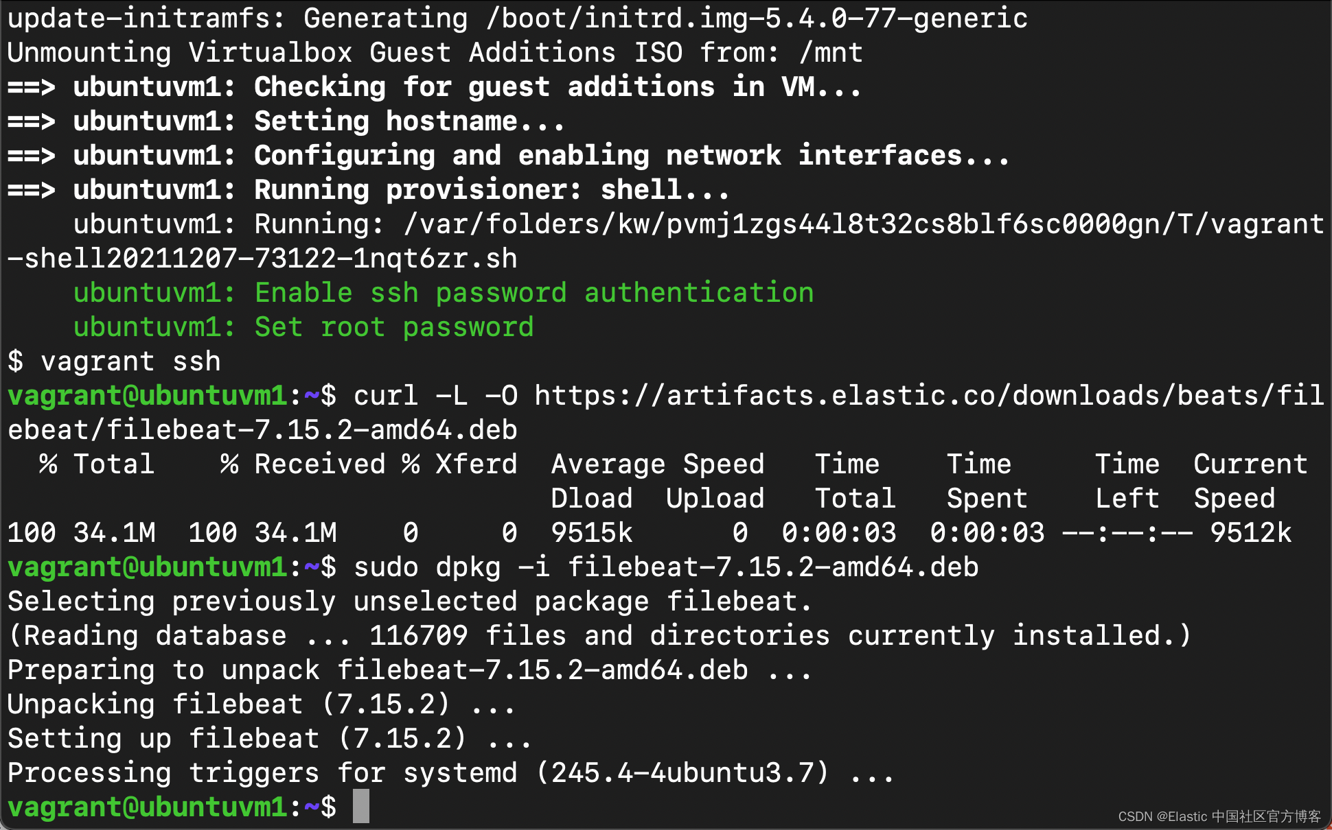 - 使用 Vagrant 来创建一个 centos 7 的系统,并使用 Filebeat 及 Metricbeat 把系统日志和指标发送至 Elasticsearch