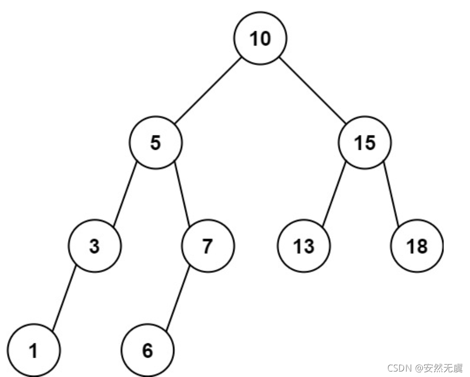 输入:root = [10,5,15,3,7,13,18,1,null,6], low = 6, high = 10 输出:23