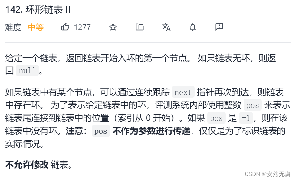 原题:环形链表 II(双指针)
