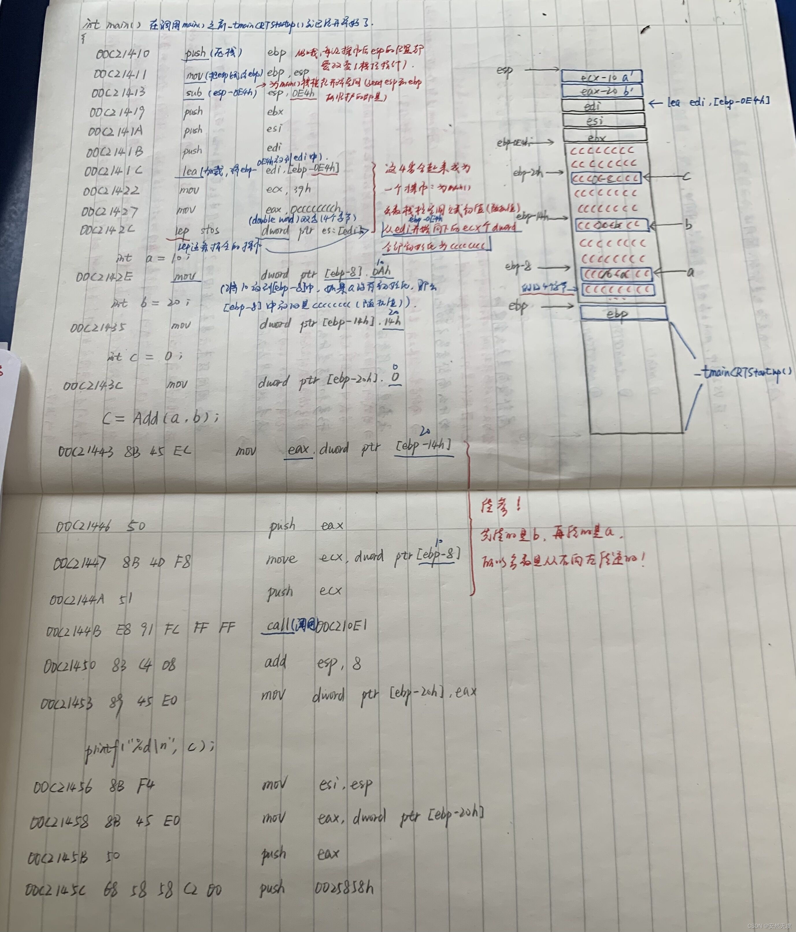 那下面就拿函数栈帧的创建和销毁来举例子吧:
