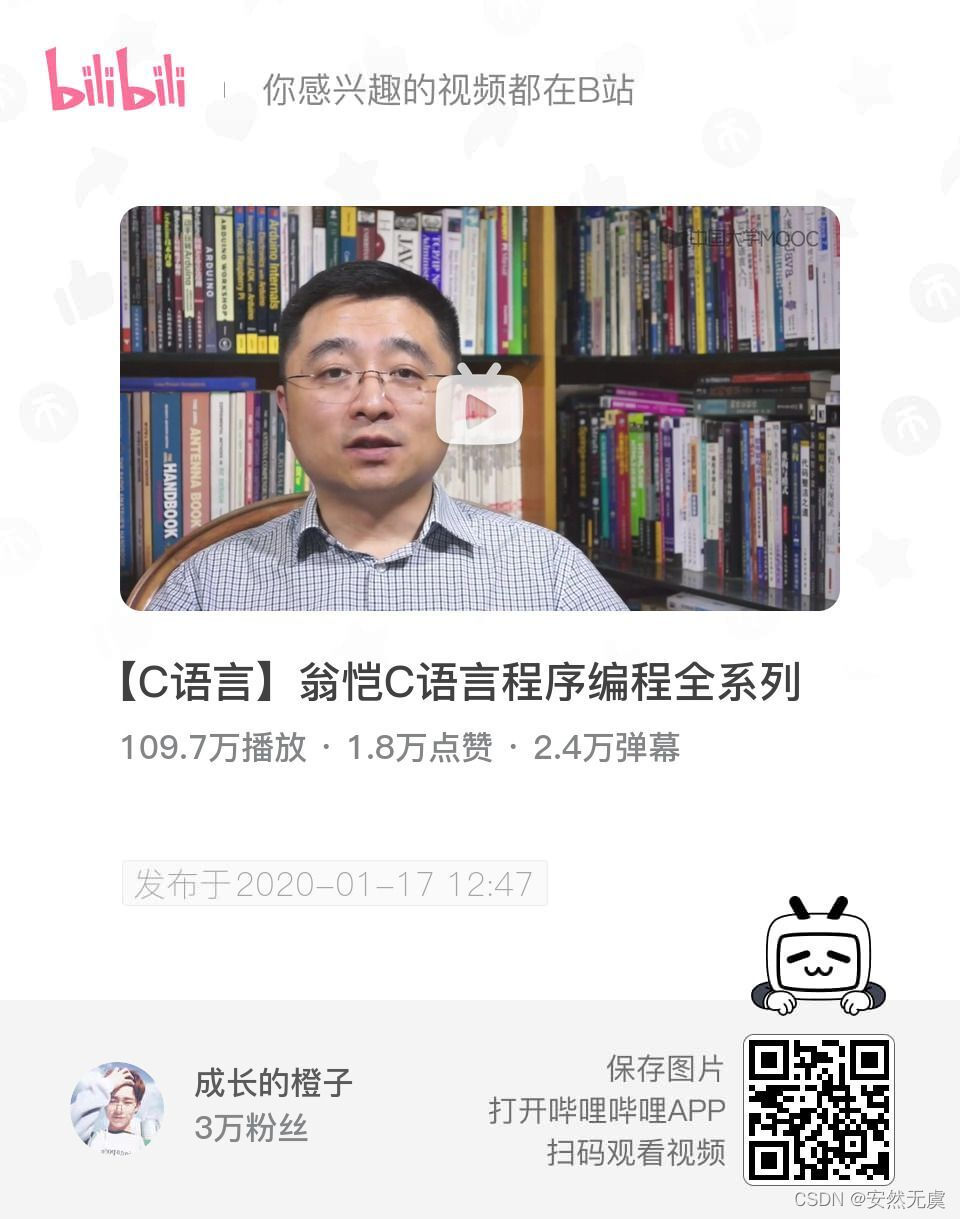 下面推荐的是C语言的自学视频,个人认为讲的是真好!