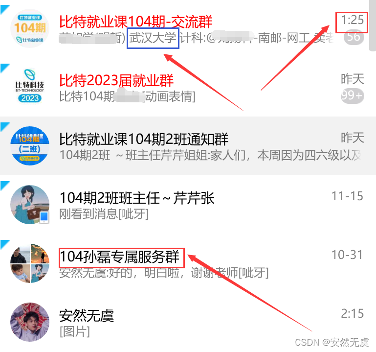 - 在比特每一期的交流群里,大家一起学习,经常讨论问题到晚上十二点半之后!看看那个时间节点,一位985的学生深夜还在问问题,我这双非院校的学渣真的是惭愧。因为一个人很容易受到环境的影响,环境是很重要的,想不跟着学都难!