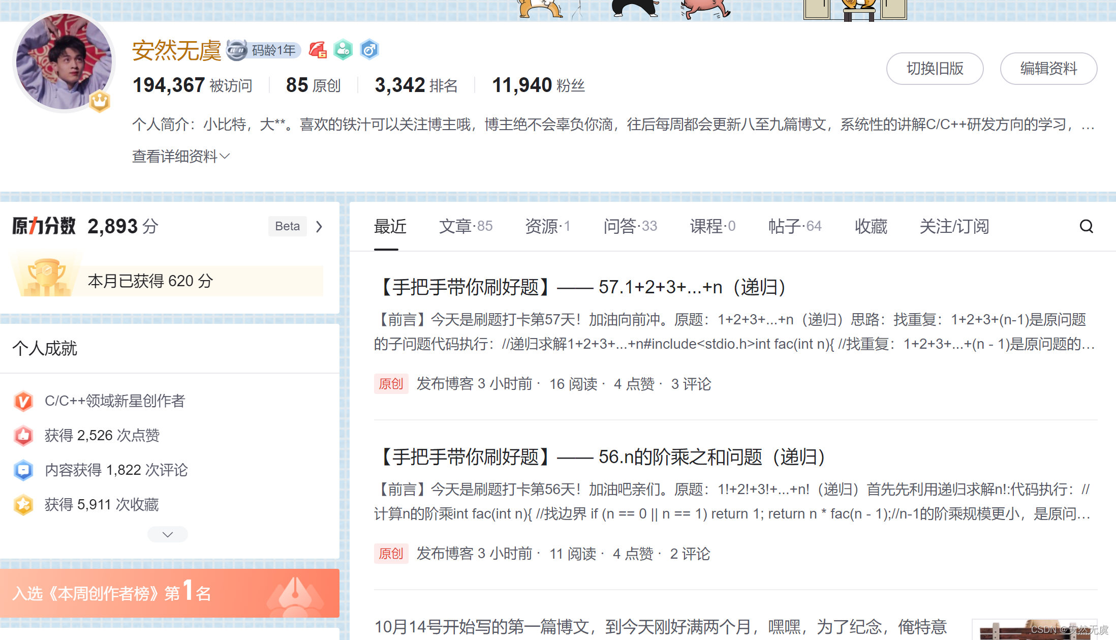 写博文两个月啦,所以想让大家了解一下“安然无虞”到底是一个怎么样的人。首先在这里我一定要强调一下:我不是大佬,真的不是大佬,我只是普通的不能再普通的一名正在努力求学的大众当中的一员罢了。所以铁汁们如果有啥问题需要问我的,别不好意思,我们都一样的,谁还不是从不会到会呢,所以不要那么客气,太见外啦,只要我知道的地方,必定会知无不言,言无不尽的!