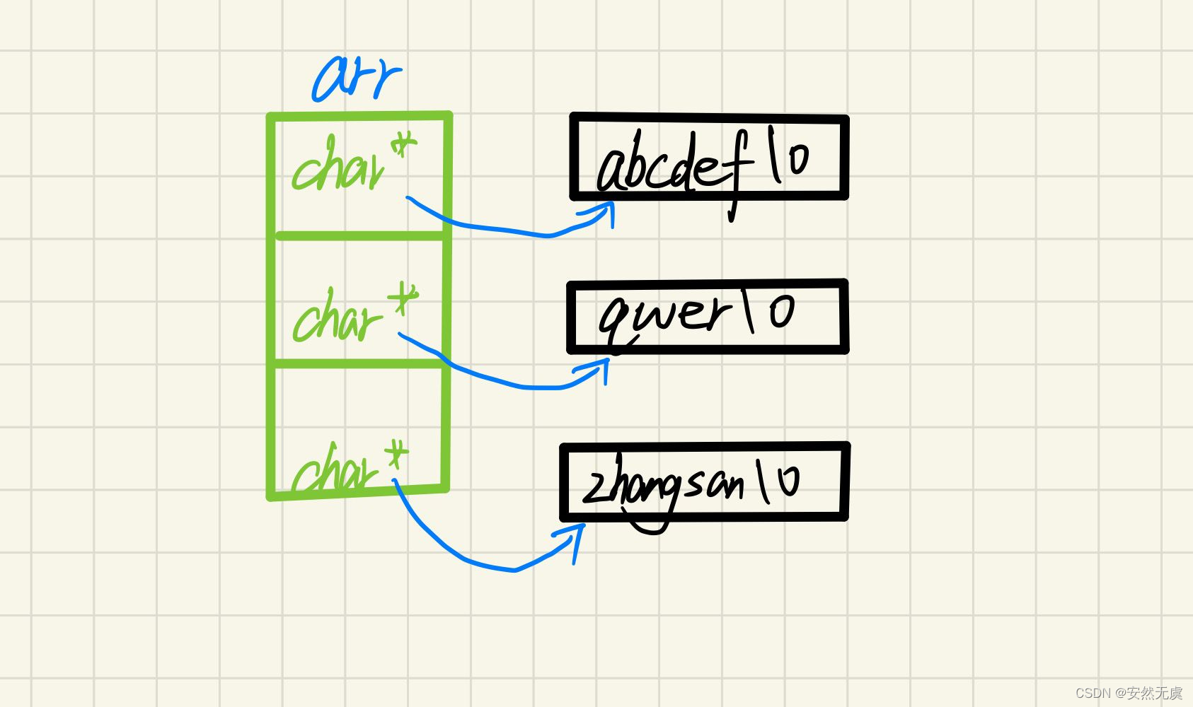 int* arr1[10];//整型指针的数组 char* arr2[5];//一级字符指针的数组 char** arr3[5];//二级字符指针的数组