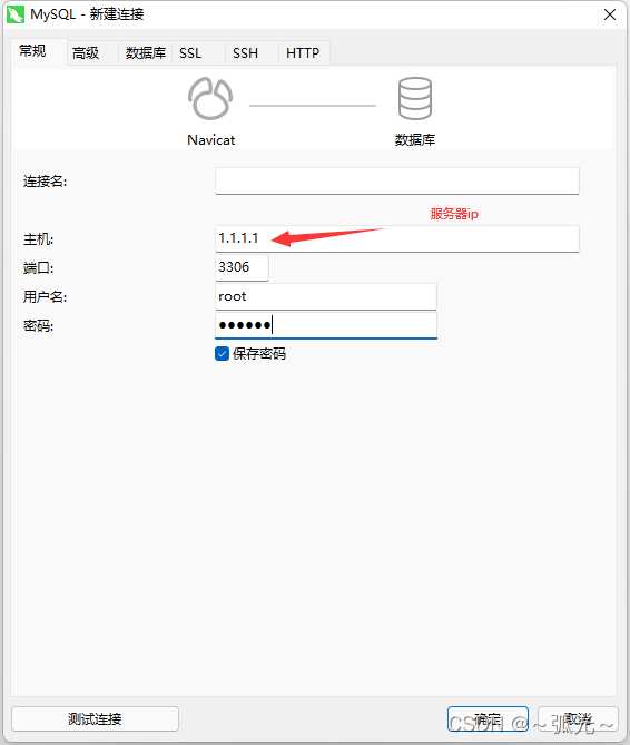 现在阿里云服务器打开3306端口,就可以访问mysql了,使用navicat可以连接尝试: