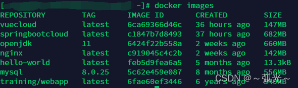 运行命令拉取之后,通过下面命令可以查看所有镜像: