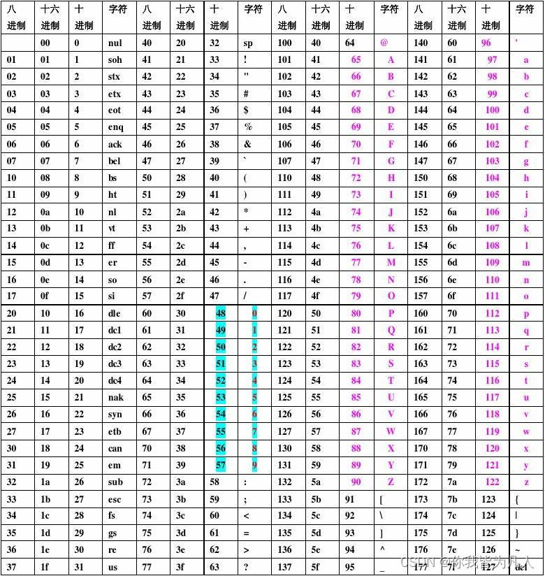 这道题看起来有点麻烦,是让大写字母转换成小写字母,而且是多组输入输出,那么首先创建一个变量ch 如果是多组的话,那么就用到循环了 那么大家就要认识一个函数 getchar 是用来专门接收字符的 还有个知识点需要知道 ASCII表 中 因为在键盘上的字符 而创建的表,下面表中可以看到 大写A 与小写a十进制数字差距32 那么是不是可以理解为 加上32可以转换小写呢 答案就是这样的 ,那么接下来整理思路: