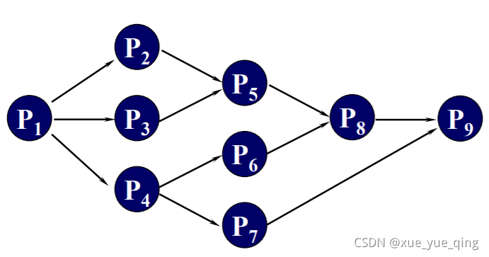 前趋图(Precedence Graph)是一个有向无循环图,可记为DAG,用于描述程序/进程之间执行的先后顺序。
