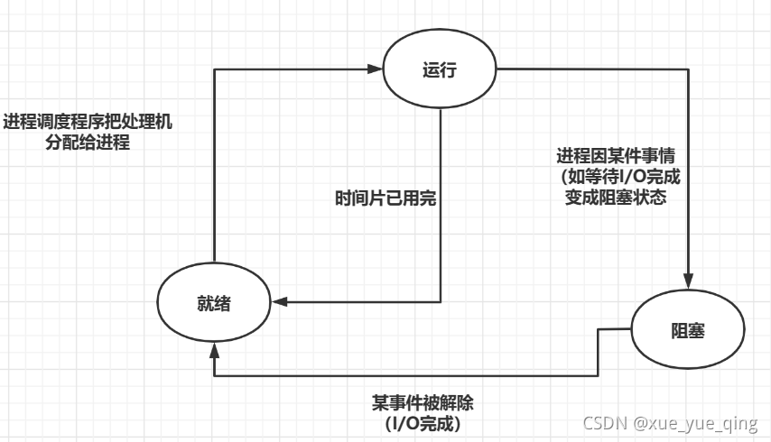 就绪状态:当进程已经获得了除CPU以外的所有资源, 一旦得到CPU,就立即可以运行,则这些进程所处的状态为就绪状态。 就绪队列:所有处于就绪状态的进程所在的队列。