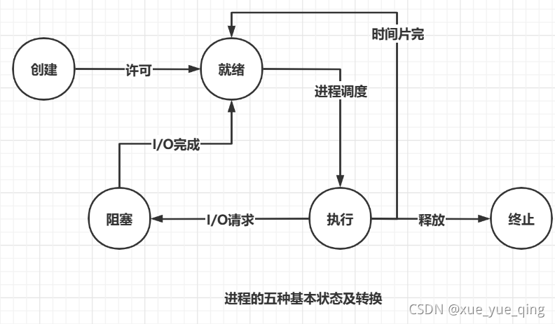 创建态:进程由创建而产生。为一个新进程创建必要的管理信息,保证进程的调度必须在创建工作完成以后进行,处于创建状态的进程,当获得了所需要的资源以及对PCB初始化工作完成后,便可以由创建状态进入就绪状态。