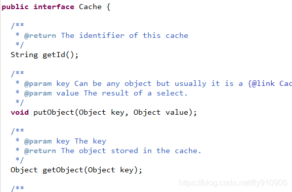 Cache: MyBatis中的Cache接口,提供了和缓存相关的最基本的操作,如下图所示: