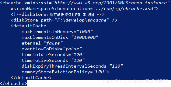 eternal - 设定缓存的elements是否永远不过期。如果为true,则缓存的数据始终有效,如果为false那么还要根据timeToIdleSeconds,timeToLiveSeconds判断