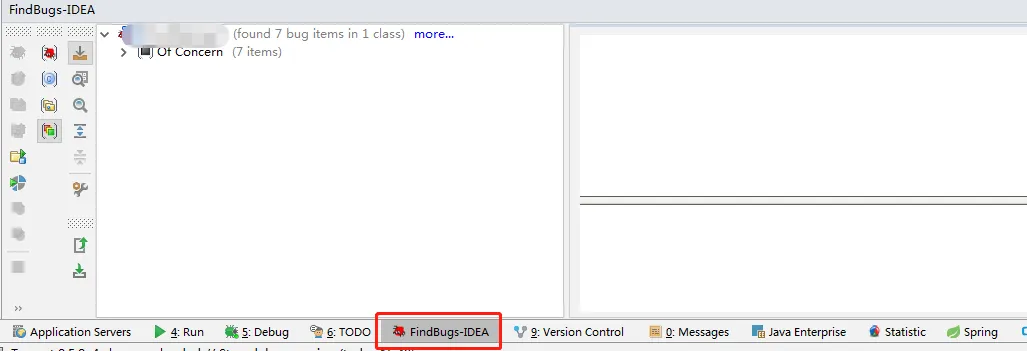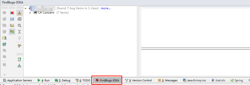 安装好重启,在IEDA下面会有FindBugs-IDEA标致的控制面板