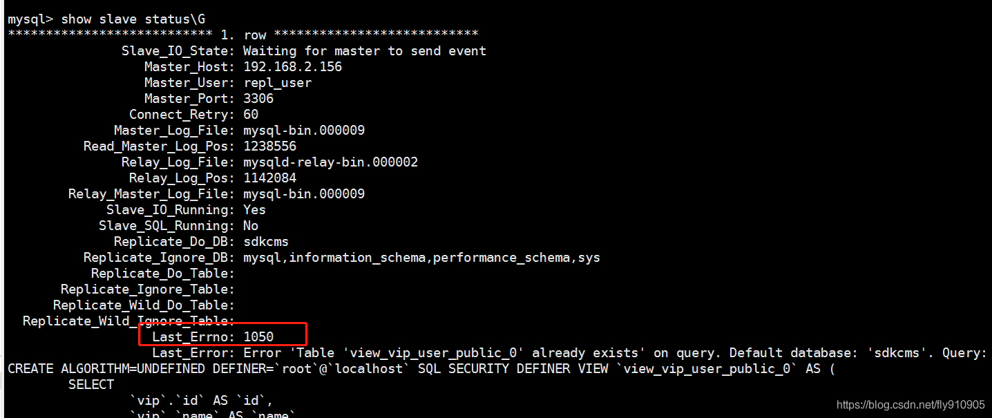 解决方案:出现1032,表示从数据库上面缺少某一条数据记录,主数据库对这条记录又做了修改,从数据库在修改时报错。解决方案是直接用数据库管理工具,数据传输模式处理具体异常的数据表,保证主数据与从数据库对应的报错数据表结构信息一样。