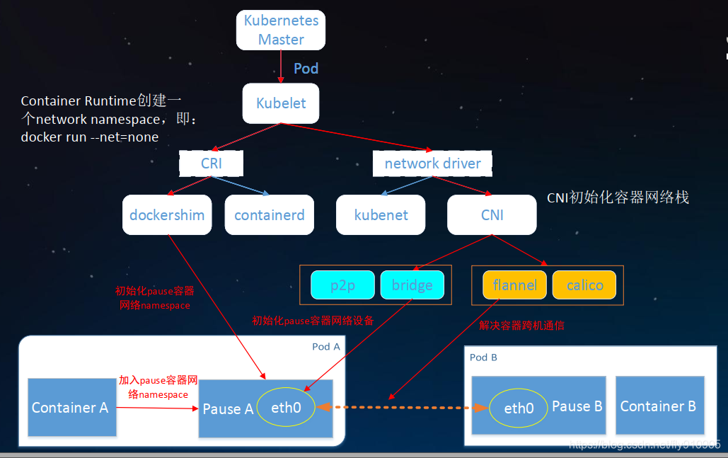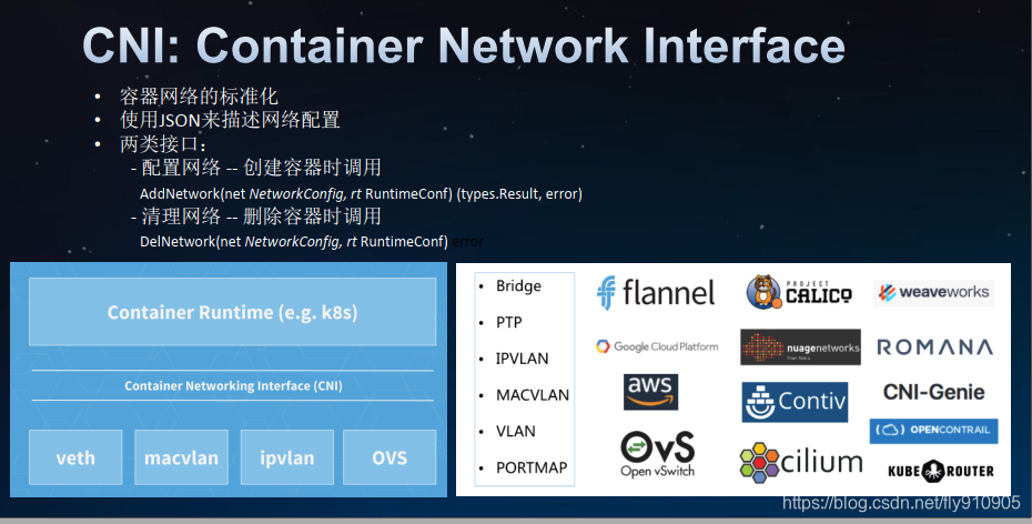 CNI( container network interface)用于配置Pod网络 -不支持docker网络