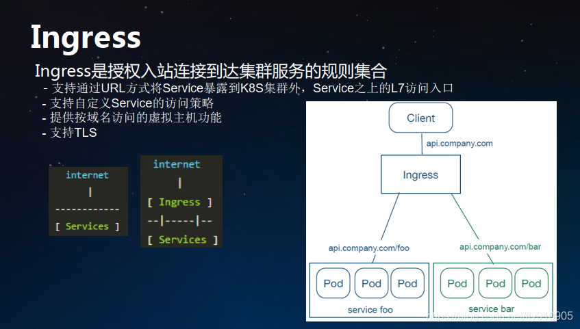 - - 支持通过URL方式将Service暴露到K8S集群外, Service之上的L7访问入口