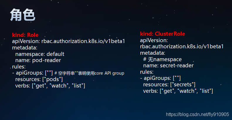 - * Role适用带namespace的资源, ClusterRole适用集群资源或非资源API
