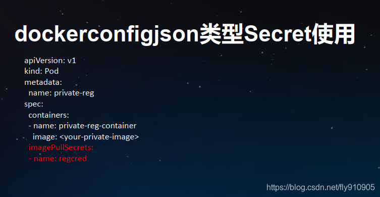 kubernetes.io/dockerconfigjson类型secret是将包含Docker Registry凭证传递给 Kubelet 的一种方式,可以用来为Pod拉取私有镜像
