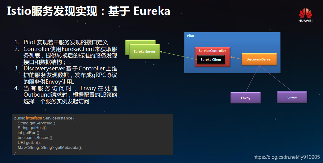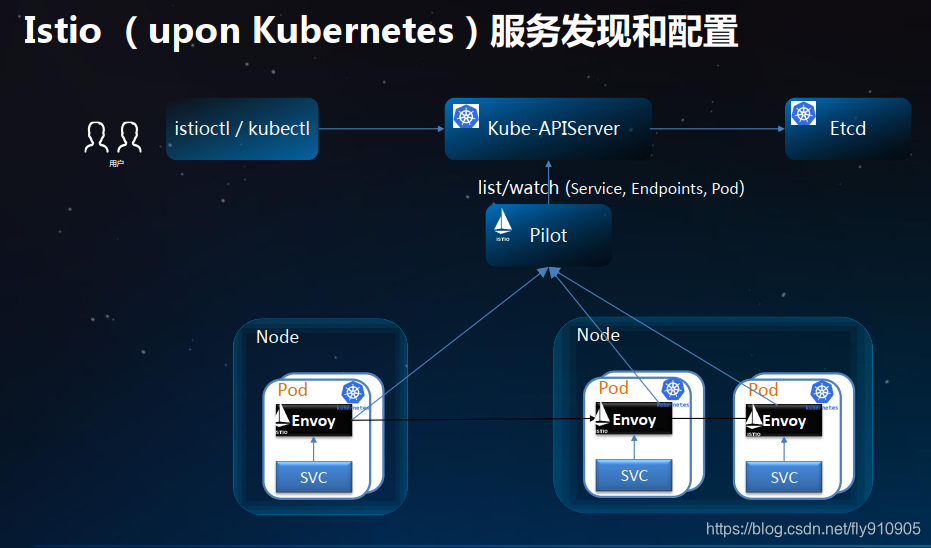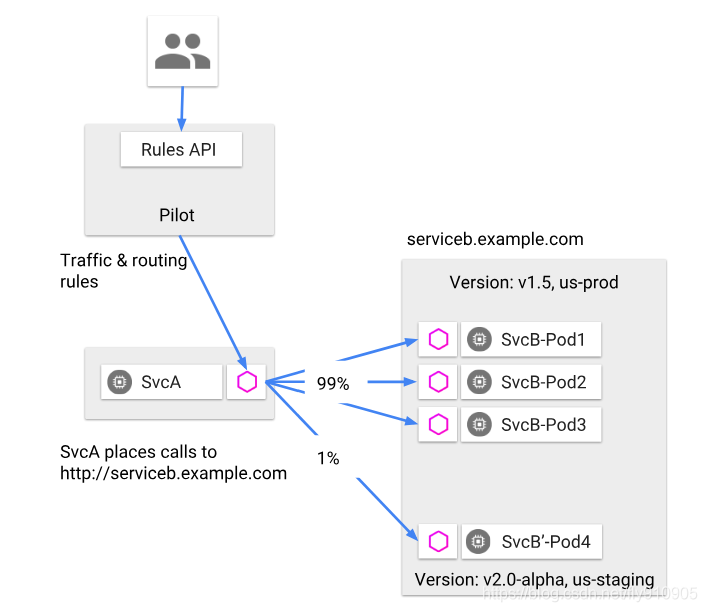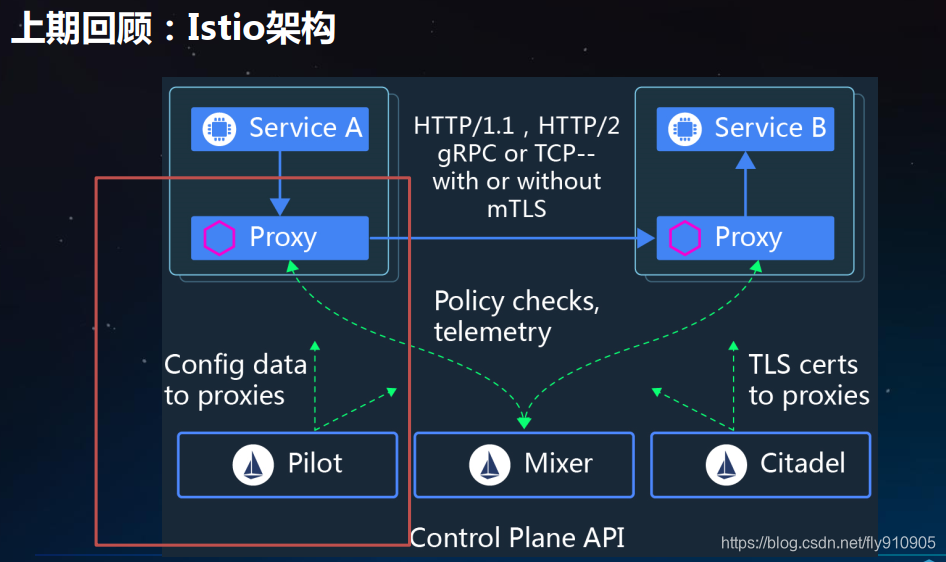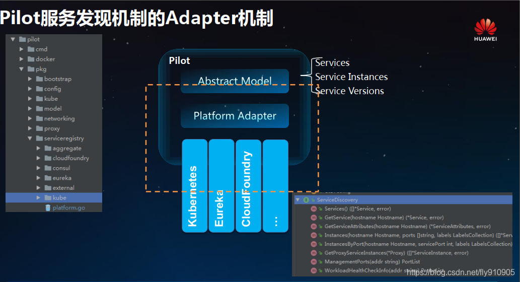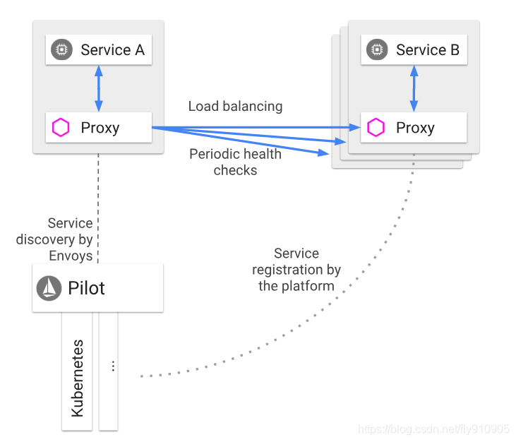 - 服务注册表: Pilot 从平台获取服务发现数据, 并提供统一的服务发现接口。