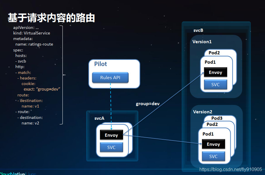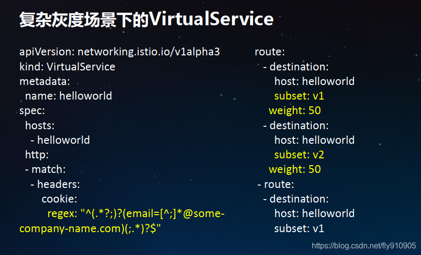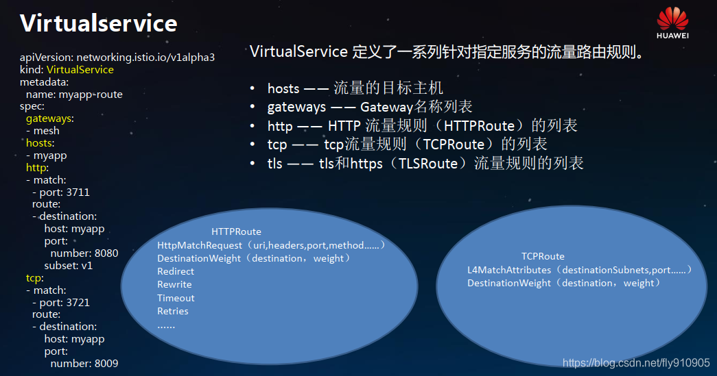 - VirtualService 在 Istio 服务网格中定义路由规则,控制路由如何路由到服务上。