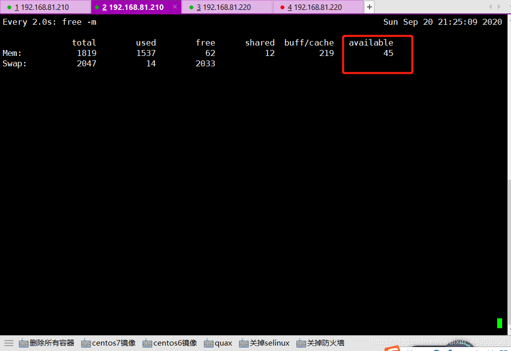 2.再打开一个xshell通过watch目录观察内存使用